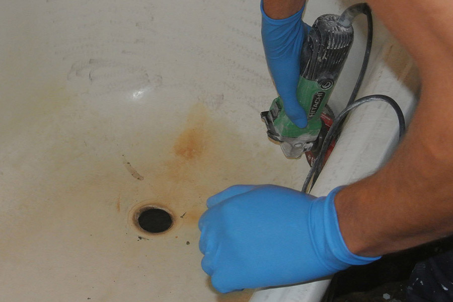 - Далее применяется абразивный камень, чтобы завершить зачистку старого покрытия.;